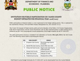 NANDI COUNTY INVITES PUBLIC INPUT ON UPCOMING 2026/2027 BUDGET ESTIMATES